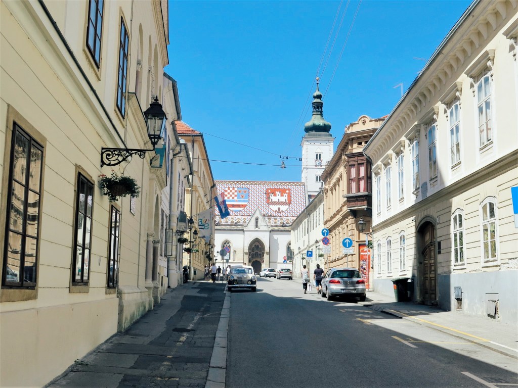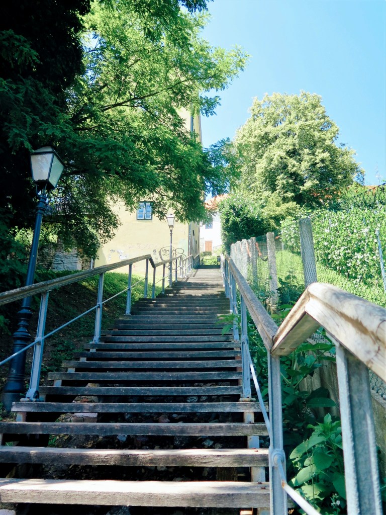 On hot days like the day we visited, it is highly recommended to try out the local transport that takes you to the upper-town without a single burned calory. I mean, I’m not complaining about our way of discovering the city’s sights but just in case you’re not fan of walking up a steep hill, there is another way up. And although, it costs some kunas, it can be a great experience for kids. It’s the funicular tram that goes all the way up to the Lotrščak Tower. We didn’t try this attraction by ourselves, yet still, I managed to take a pic of how the track looks like from the station at the hill.