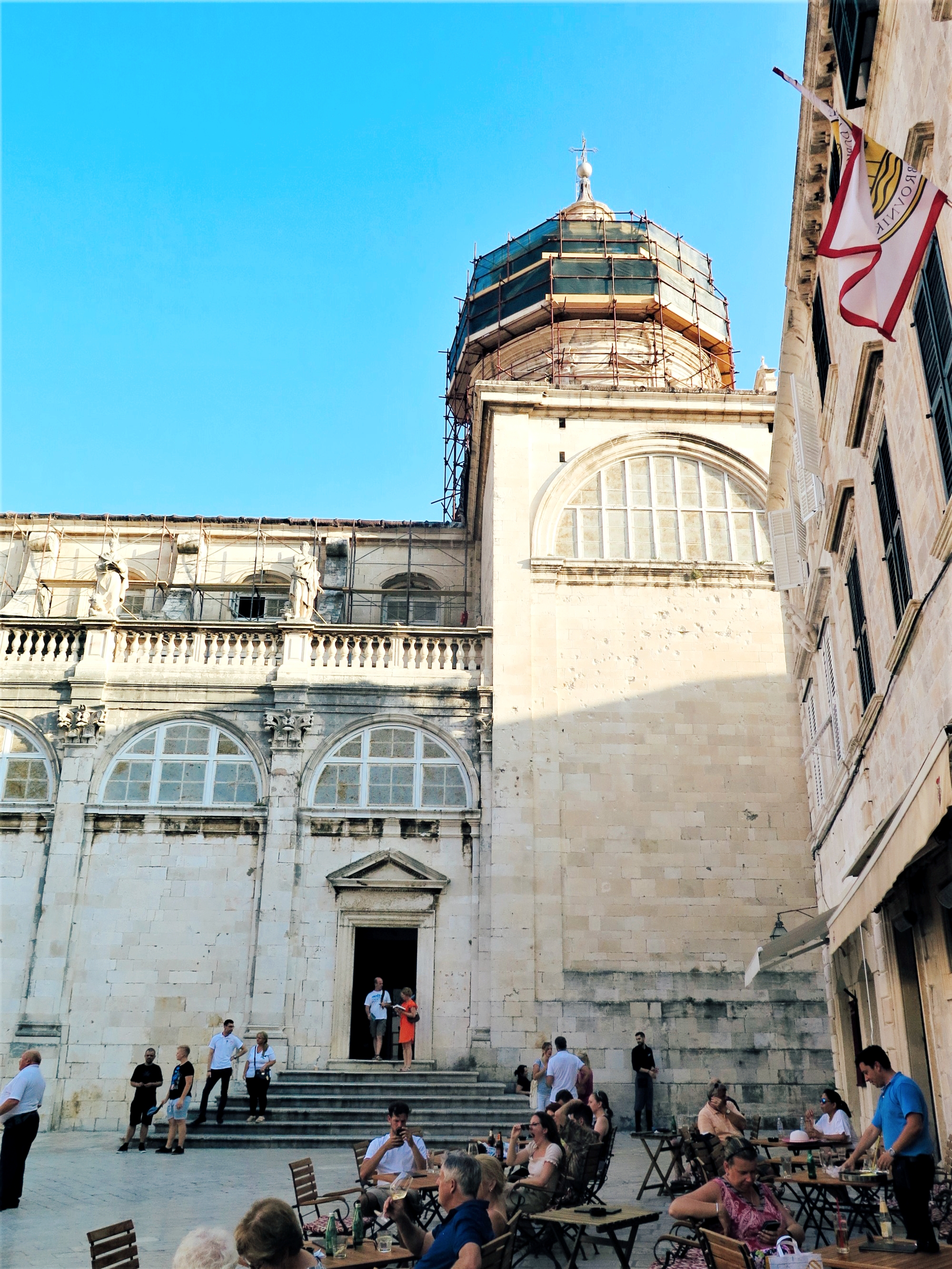 After I had done my shopping for magnets to my family, we continued our city tour towards the famous Dubrovnik Cathedral. The building itself is done into so much detail, though its exterior is not overly decorated. It seems humble at the first sight, though after taking a closer look at the little curves and ornaments on the facade, you have to admit the cathedral is a masterpiece. According to the legend, precisely 100 000 ducats was spent on building the dominant of Dubrovnik’s old town.