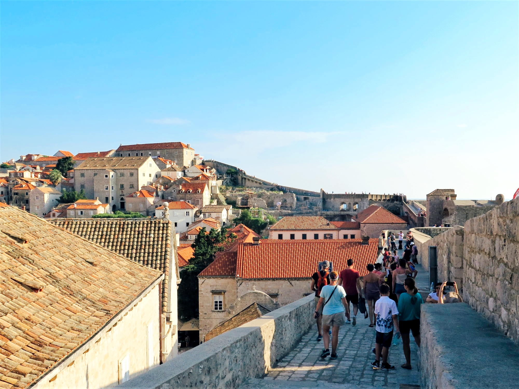 Even though we did not achieve the proper bird’s eye view that day, we at least came closer to it by climbing up the city walls and taking a long walk along. And when I say long, I really mean long – nearly 2 hours long walk. Turns out that the walls of Dubrovnik are 2 kilometres long. Yes, I know, you must think: „Who would ever walk 2 hours and pass just 2 km?“ The truth is that the fortifications are a bit different to the normal type of walk. Firstly, you have to watch out for tourists. The walls are really narrow and at some points, it is even hard for two people to cross each others’ way. Secondly, you have to be careful, because the heat can slow you down and even make you feel uncomfortable. Rather wear a strawhat once you’re there, walking the Walls of Dubrovnik. Also, carry a bottle of water with you, because all the stops with beverages on the walls are crazy expensive. Seriously, 8 euros for a pint of beer? And 5 euros for a glass of orange juice?