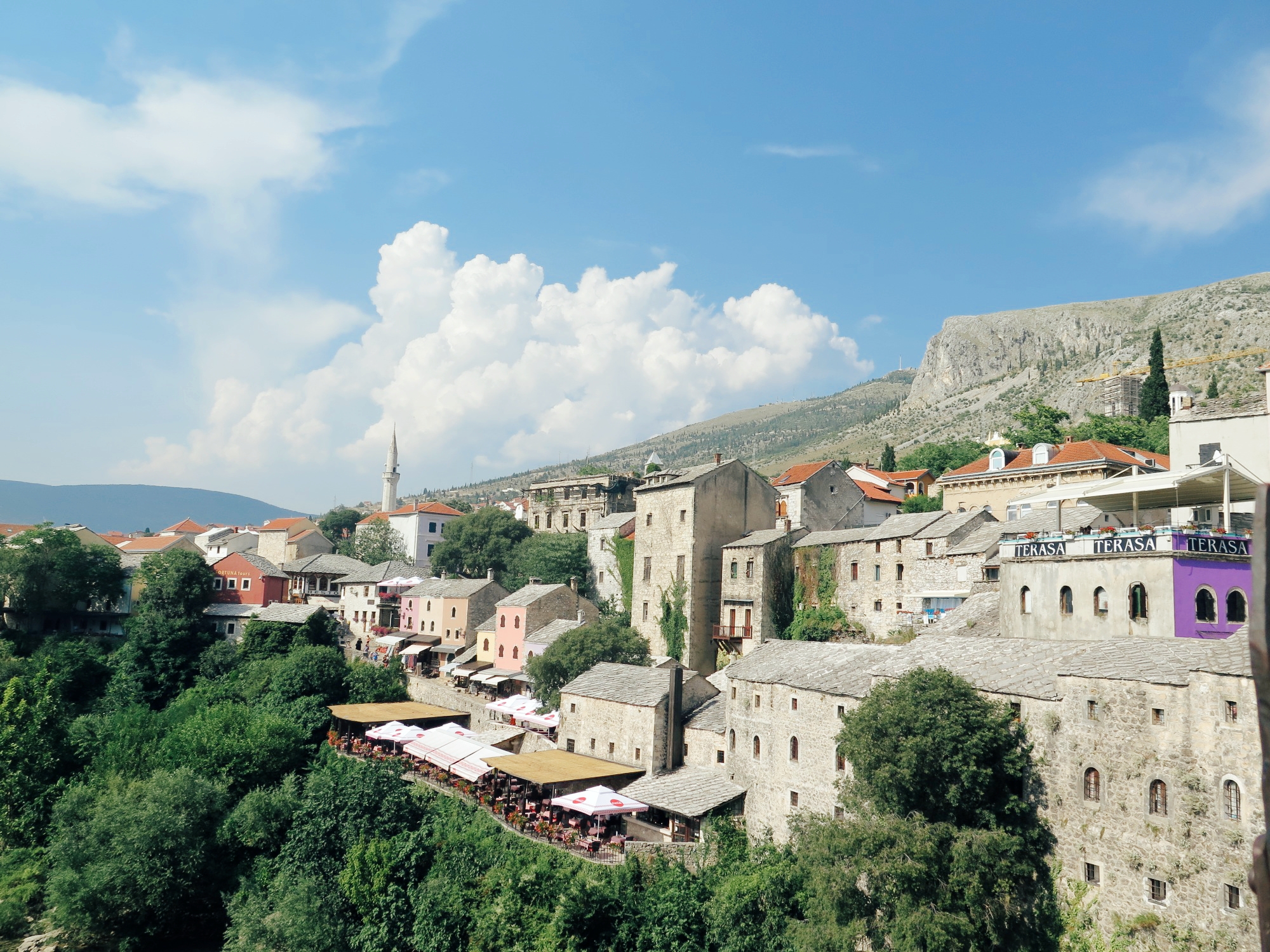We arrived to this (at first look I thought quite small) city after a long drive from northern part of Bosnia and Herzegovina. The first difference I noticed was the climate, definitely. Weather in Herzegovina was incredibly hot that day, and even though that Mostar is located just 70 kilometres south from Sarajevo, the weather there was almost 7 degrees Celsius warmer than in the capital city – the air thick and dry from the heat. So a suncream is an obligatory item in your luggage if you’re heading to the southern part of Bosnia and Herzegovina. Another thing I recommend to have with you is a strawhat – or basically any cap that would protect your head from getting sunstroke – the sun can be quite agressive in Mostar (just like anywhere else in the south).