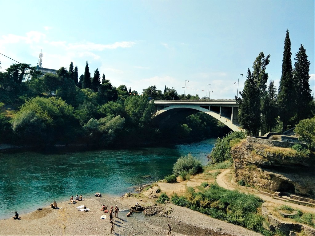 The riverside of Ribnica is nowadays a nice place for swimming or sunbathing. Though, be careful with the little rocks which can be really sharp and thus, hurt your feet. Just to make sure, I would use some swimming shoes when entering the river… or walking on the riverside. I remember the moment of getting into the water in Podgorica was one of the best moments of that day. As the heat was really something we were struggling with, we could not be happier to finally take the chance of cooling down in the waters of Ribnica. And also, we could not care less about the clarity of the water on such day. I remember guys were feeling so warm on our way from the riverside, that they didn’t even bother putting their shorts back on – they were just walking the streets in their swimsuits. And me walking along side with them, and trying to pretend that I’m just some random passer-by who had never met them before. Ah, it was a fun day.