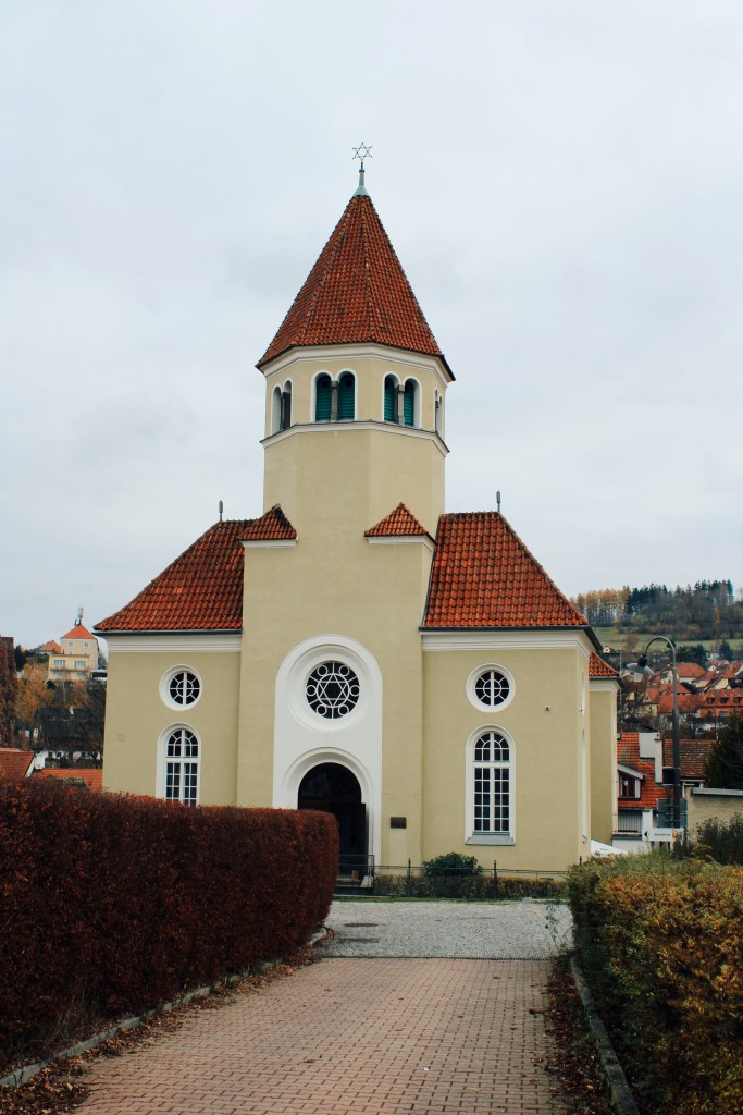 With our last place and story, I’m just gonna take you a little bit further away from the historical centre of Český Krumlov. On a hill, just a few hundred metres away from the Atelier Seidel, you can find the Old Synagogue of Český Krumlov. Though this tabernacle is built in more simplistic design, I still think it is a very interesting place to see, especially in case you’re interested in the history of Jewish community in Krumlov.