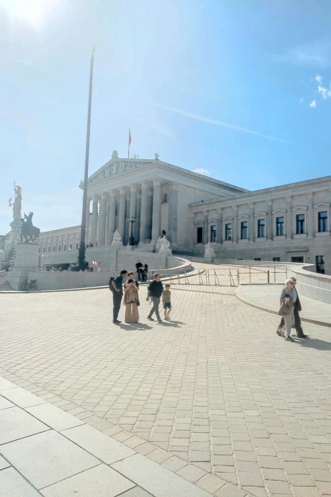 Just one house away from the museums, you might find the very centre of Austrian democracy, the Parliament of Austria. It probably won’t take too long for you to notice that the building of the Austrian parliament is just as monumental as the area of the twin museums.